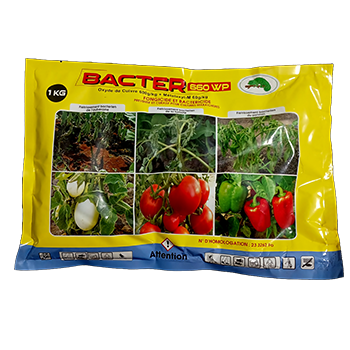 BACTER 660 WP est à la fois un fongicide et un bactéricide de contact, systémique très efficace pour la protection des cultures maraichères (Piment, Tomate, Aubergine, Chou .... ), fruitières (Ananas, Papaye etc ... ) et florales contre les maladies fongiques et bactériennes.