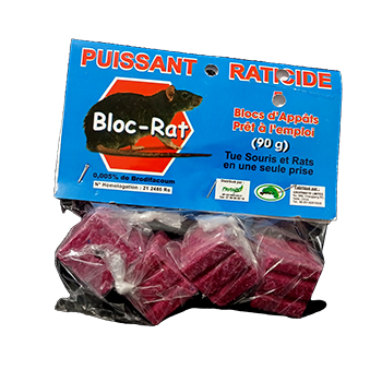 BLOC RAT est un puissant raticide qui tue les souris et les rats en une seule prise.